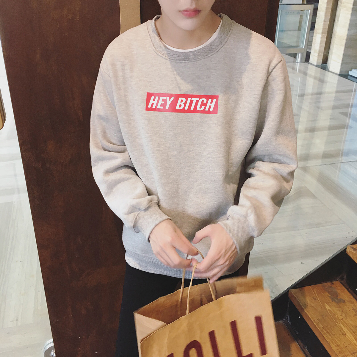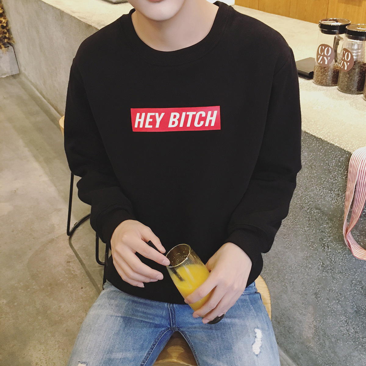 / 秋季新款圓領字母印花套頭韓版百搭寬松男士衛衣