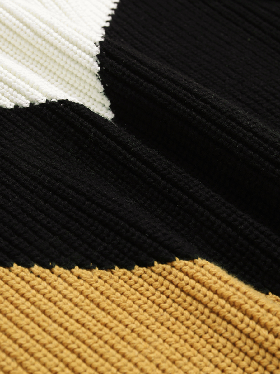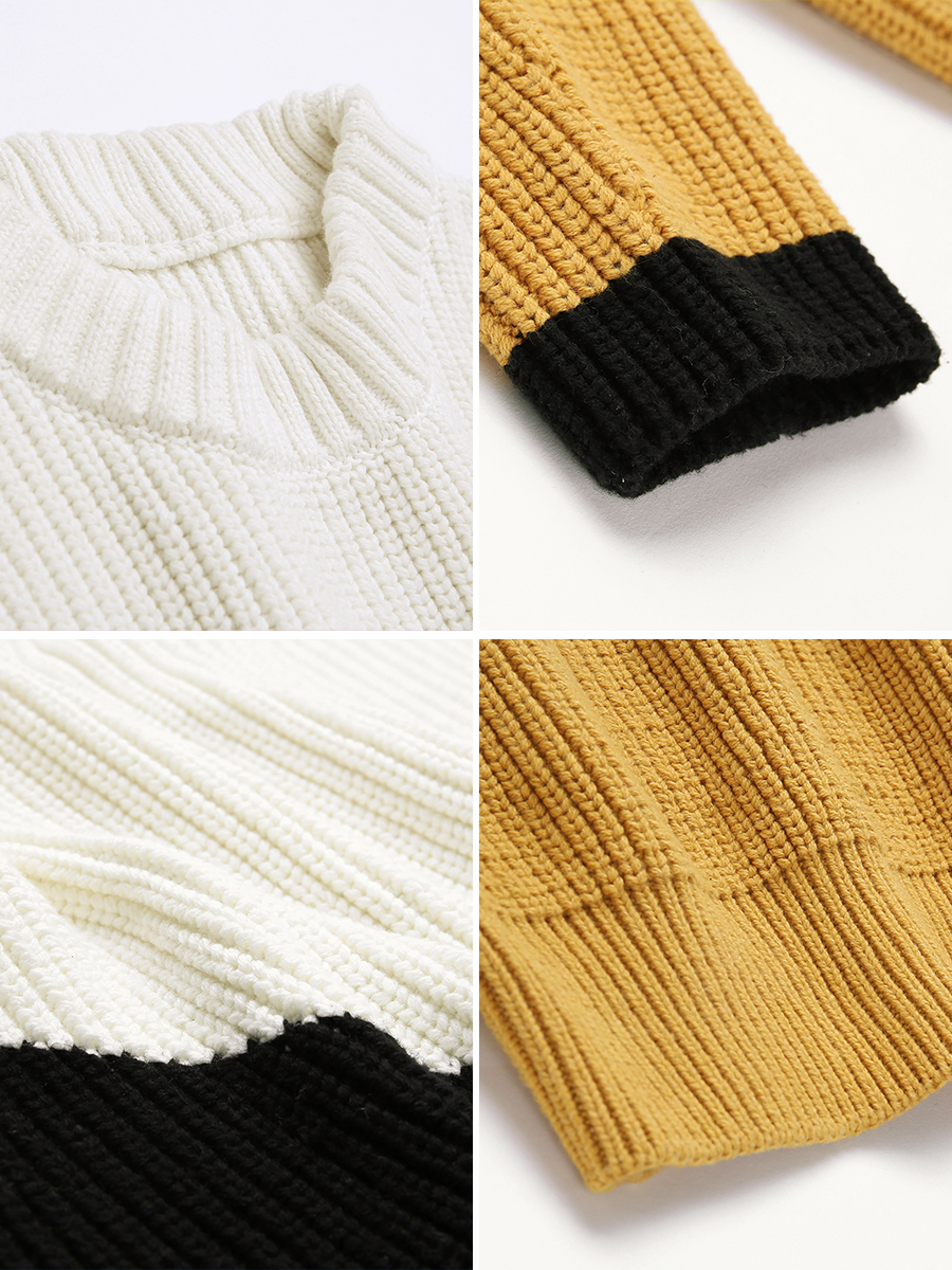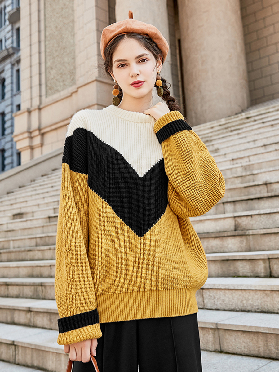 MG小象慵懶風套頭毛衣女撞色圓領針織衫冬季新款寬松長袖加厚上衣