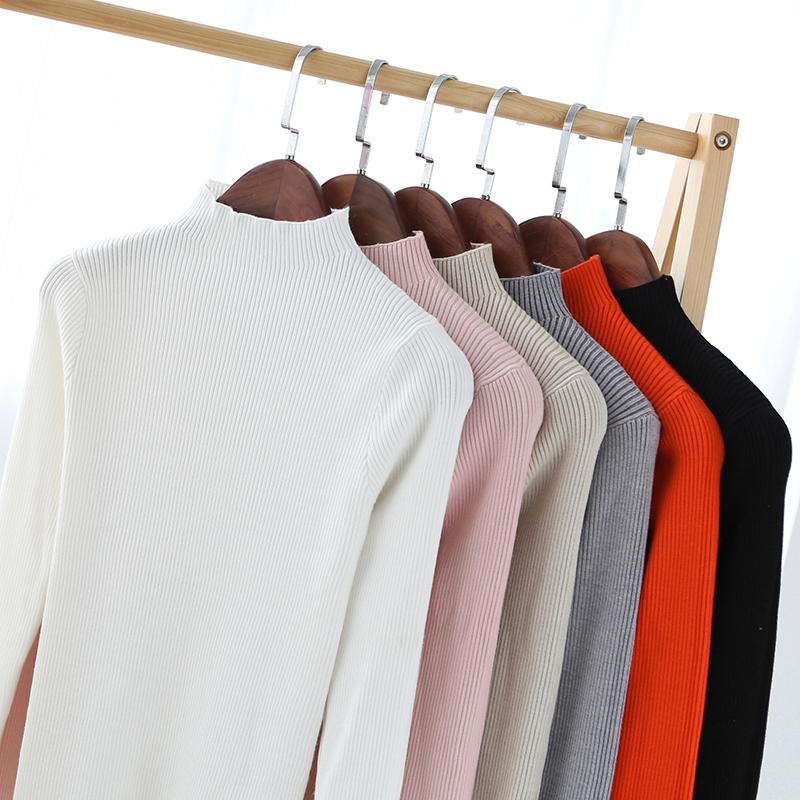 宜朵半高領針織打底衫女長袖秋冬短款百搭白色高領打底毛衣女修身
