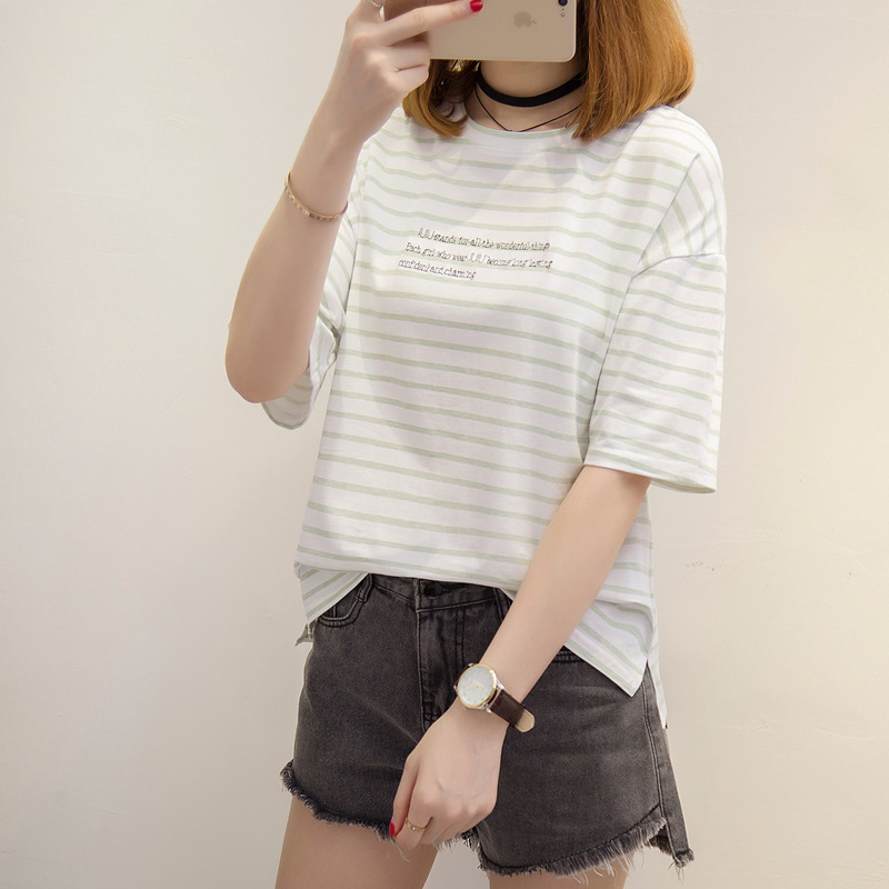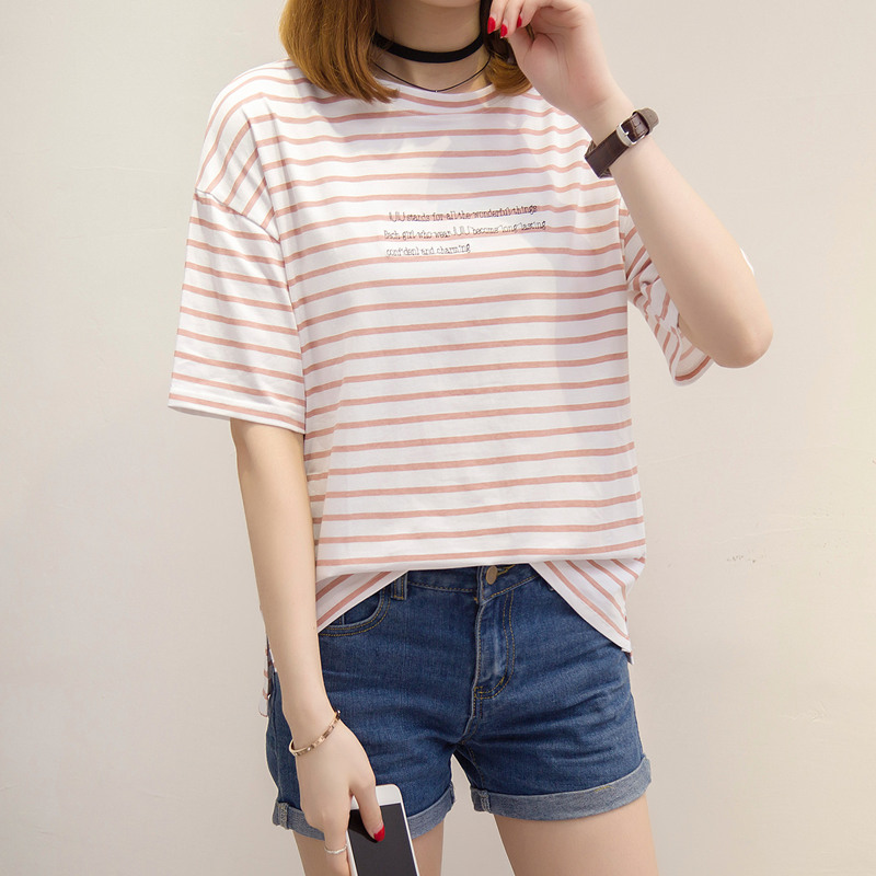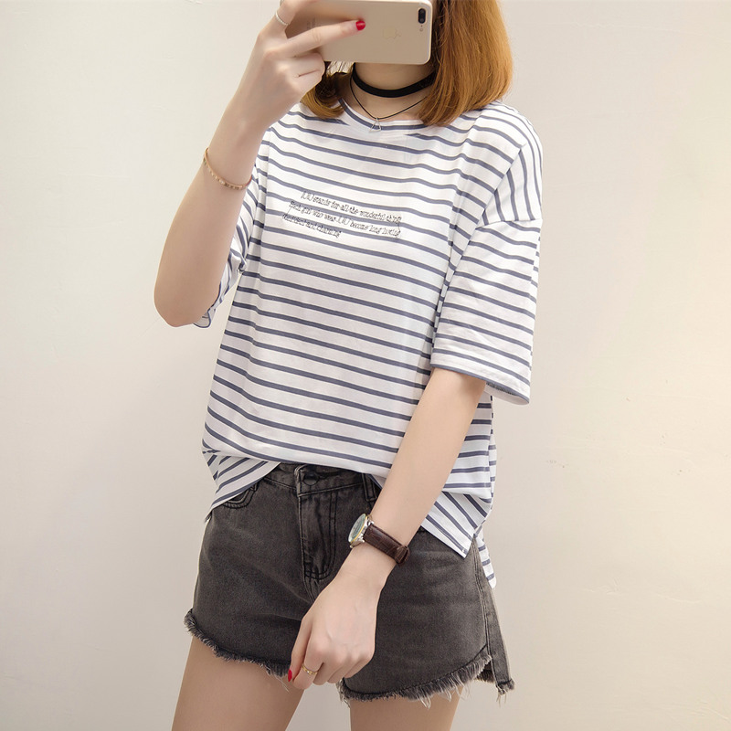 / 條紋t恤女韓版學生小清新上衣女夏bf風體恤衫短袖夏裝新款女