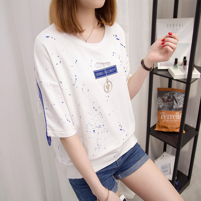 短袖上衣女夏裝新款破洞白色t恤女春季韓版打底百搭體恤衫潮
