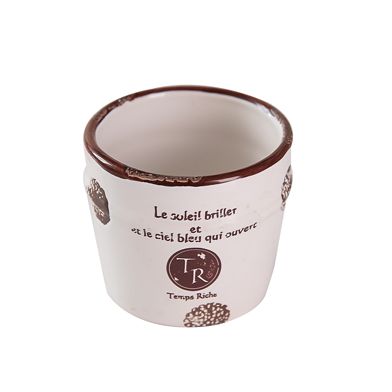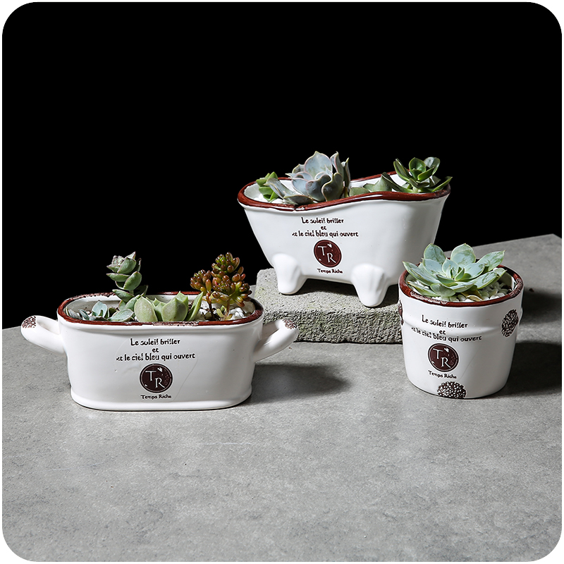 / 多肉花盆個性創意仿古做舊白色印花陶瓷工藝肉植物花器精致時尚盆