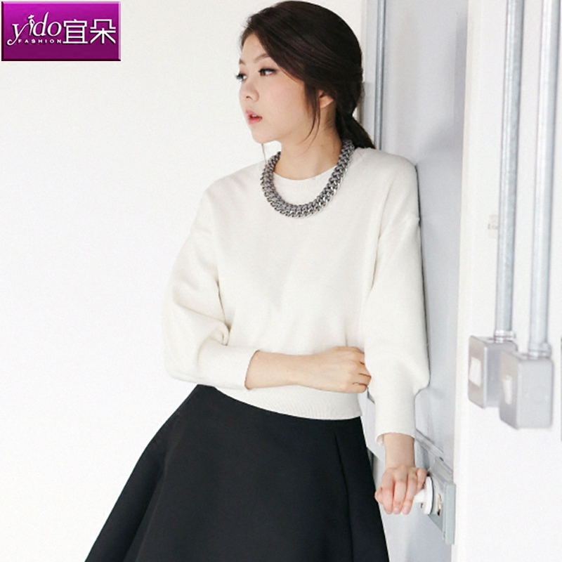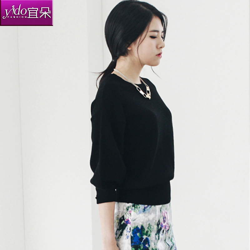 / 春季新款寬松毛衣女套頭韓版女裝潮針織短款燈籠袖長袖針織衫