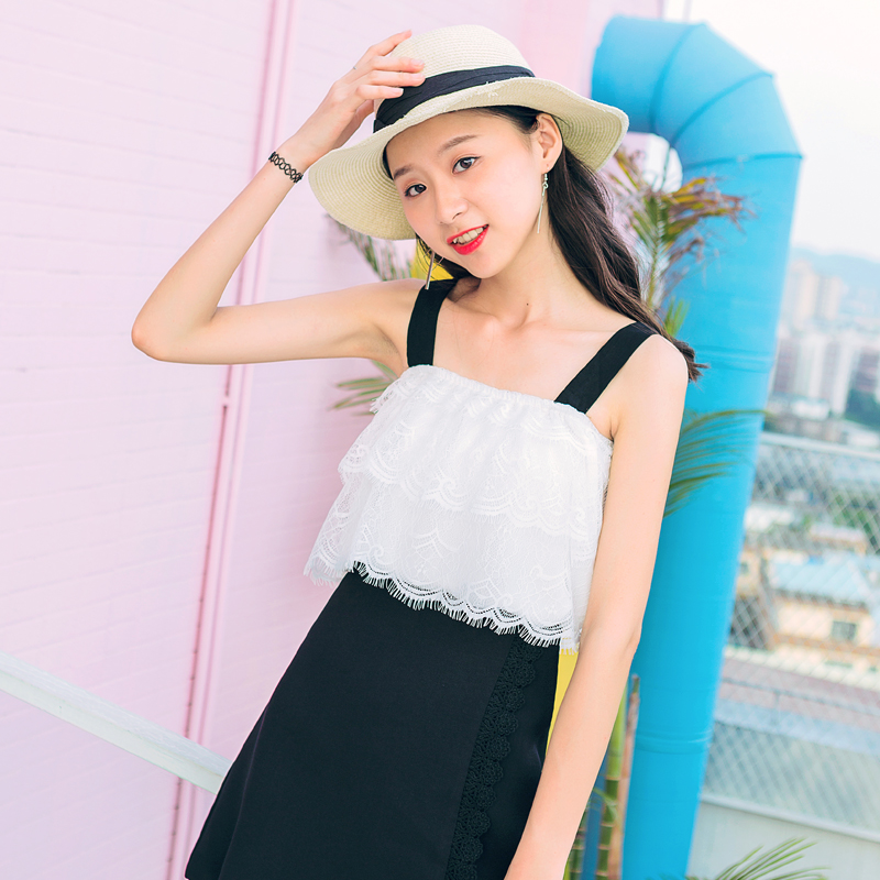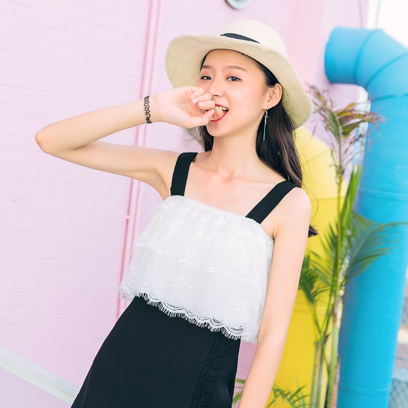2017夏裝新款韓版女裝無袖針織吊帶背心短款修身綁帶打底衫上衣潮