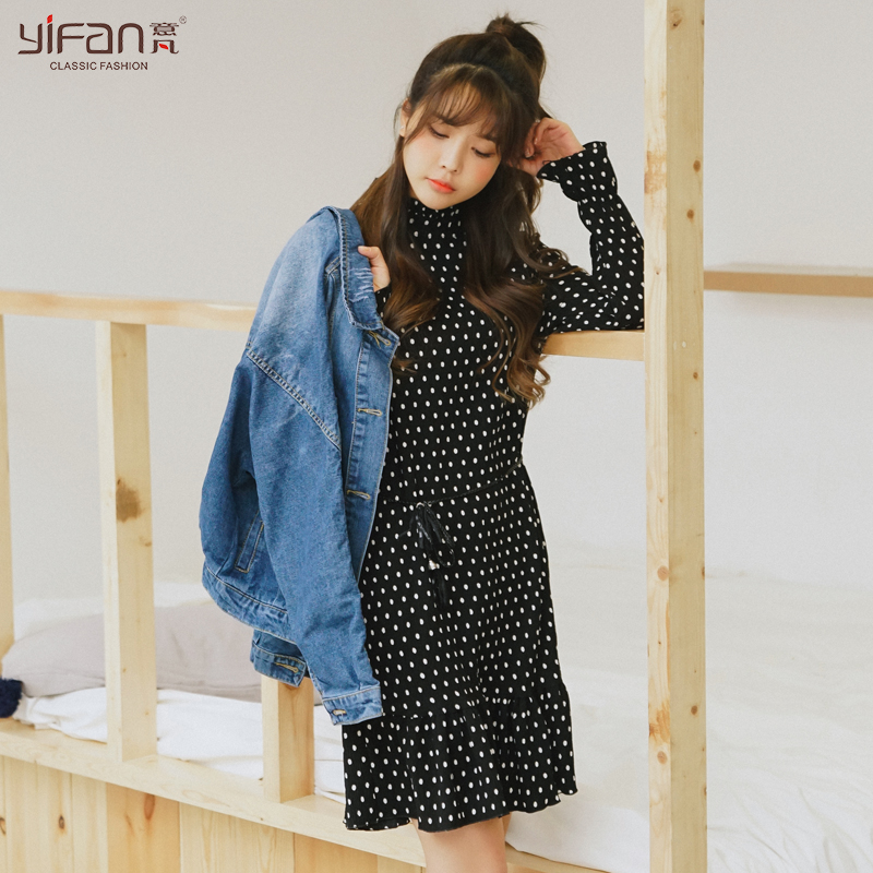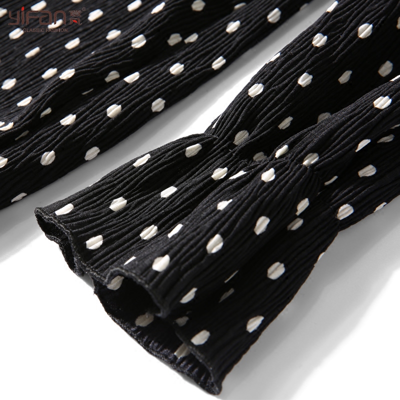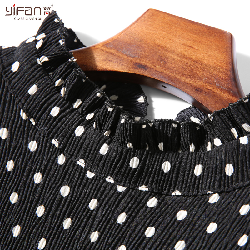 / 春夏雪紡波點中長款連衣裙套頭女裝長袖打底裙新款百褶裙