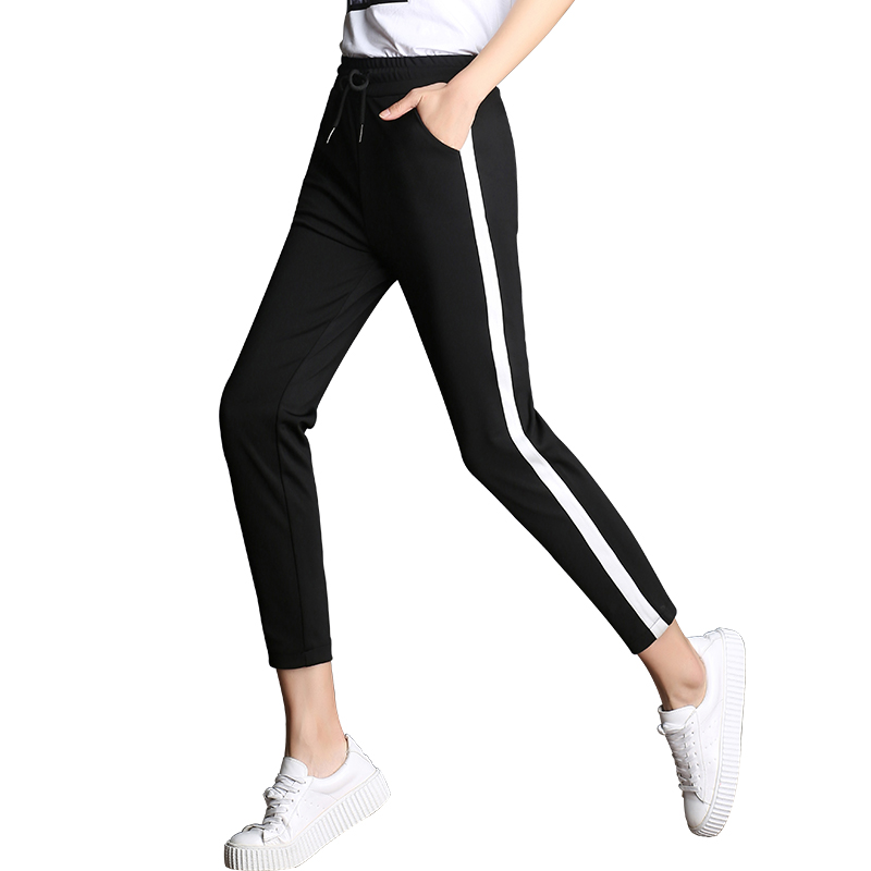 / 九分褲女小腳褲春夏新款學生百搭褲子韓版條紋哈倫運動休閑褲