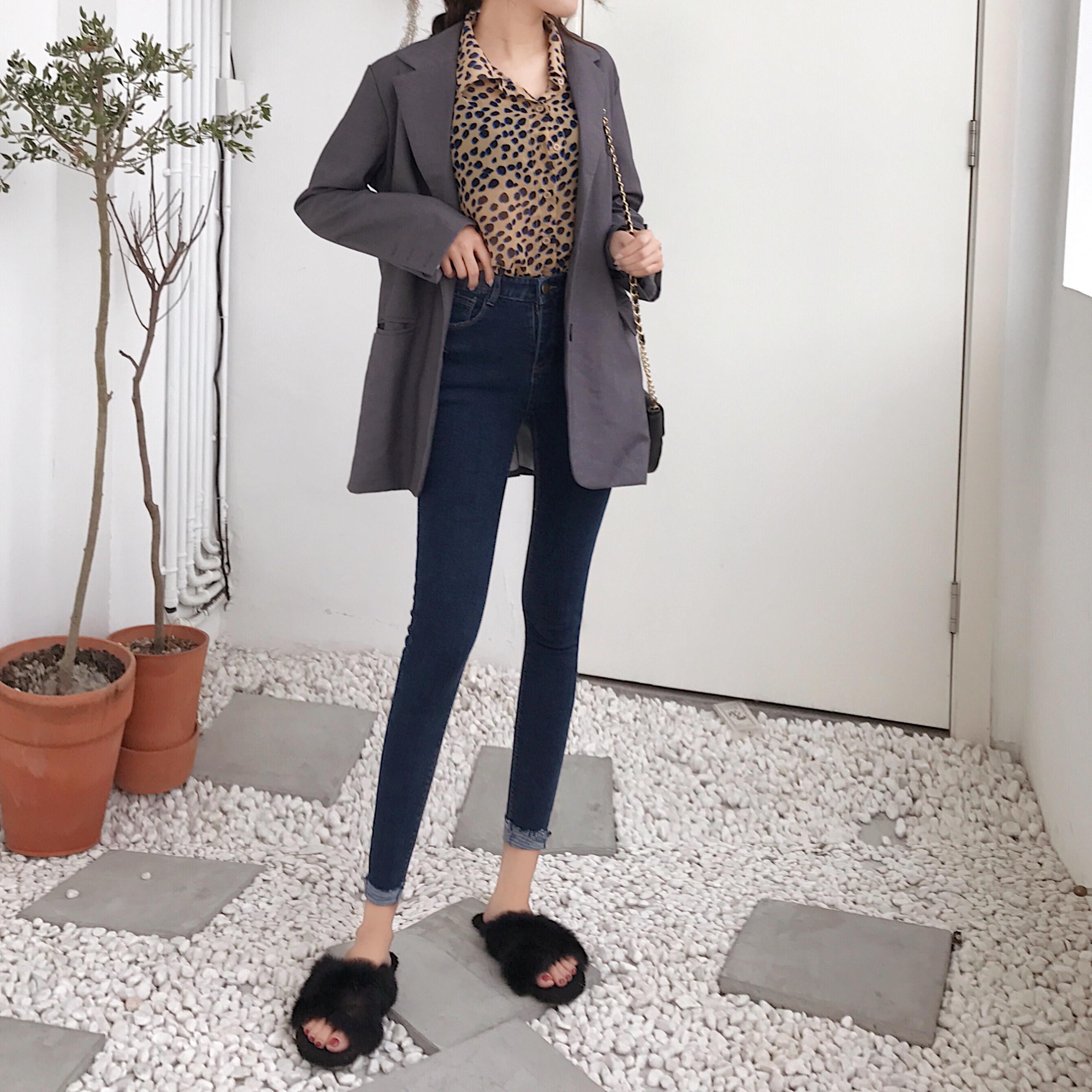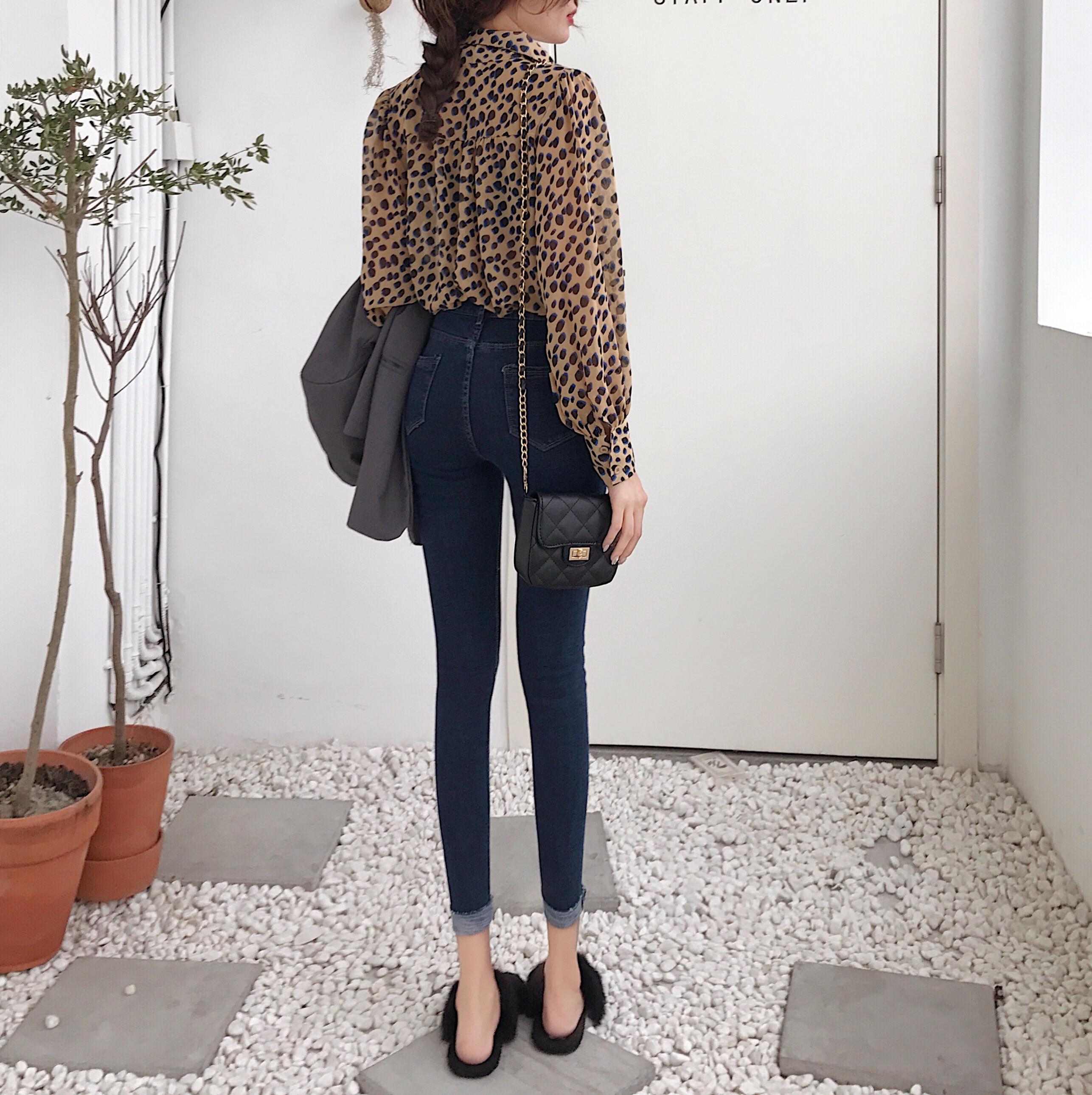 / 褲子女秋冬新韓版chic復古釘珠顯瘦小腳鉛筆褲修身彈力加絨牛仔褲