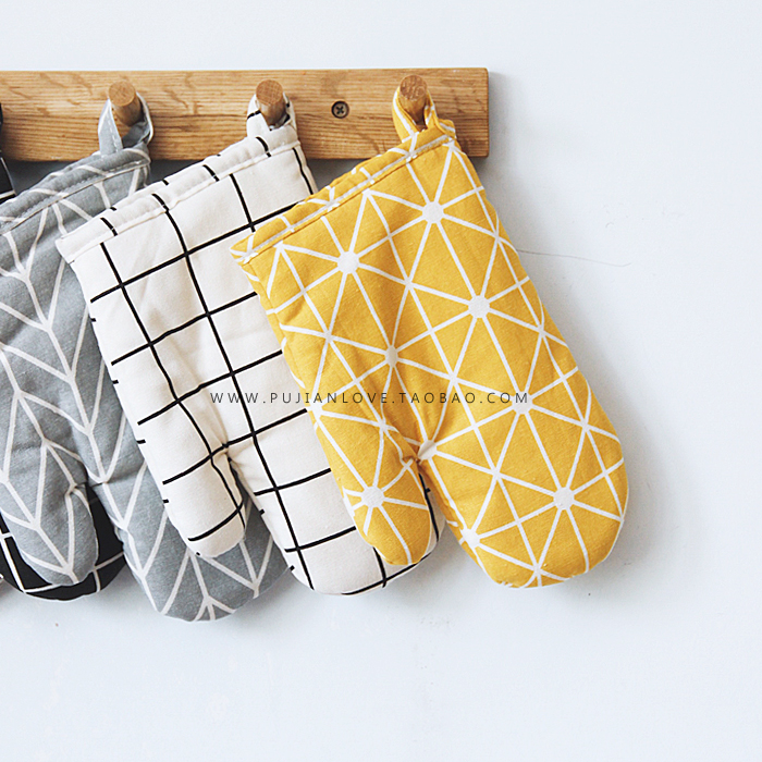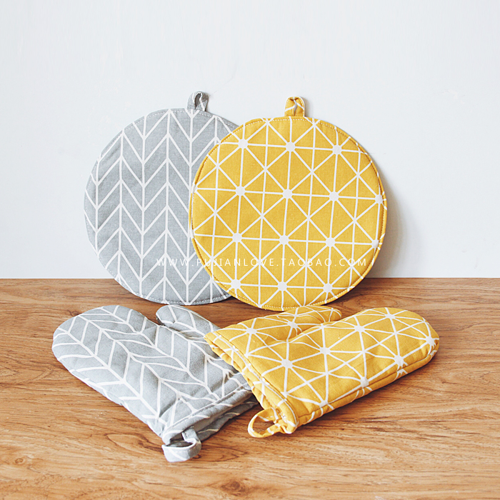 樸簡 日式加厚棉麻黑白布藝微波爐隔熱手套鍋墊 北歐風格子餐墊