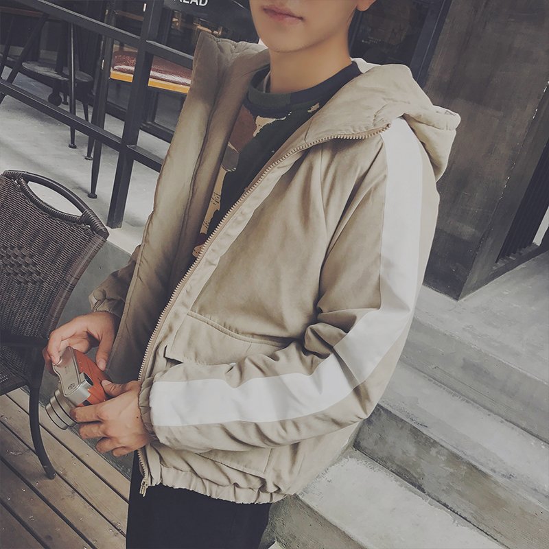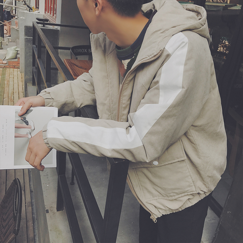 / 新款男裝日系撞色連帽棉衣男士韓版加厚棉服外套
