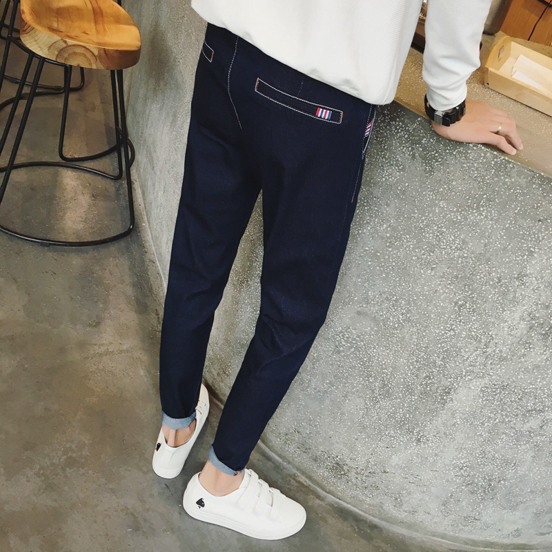 / 新款男裝韓版男士純色修身百搭小腳褲水洗牛仔褲