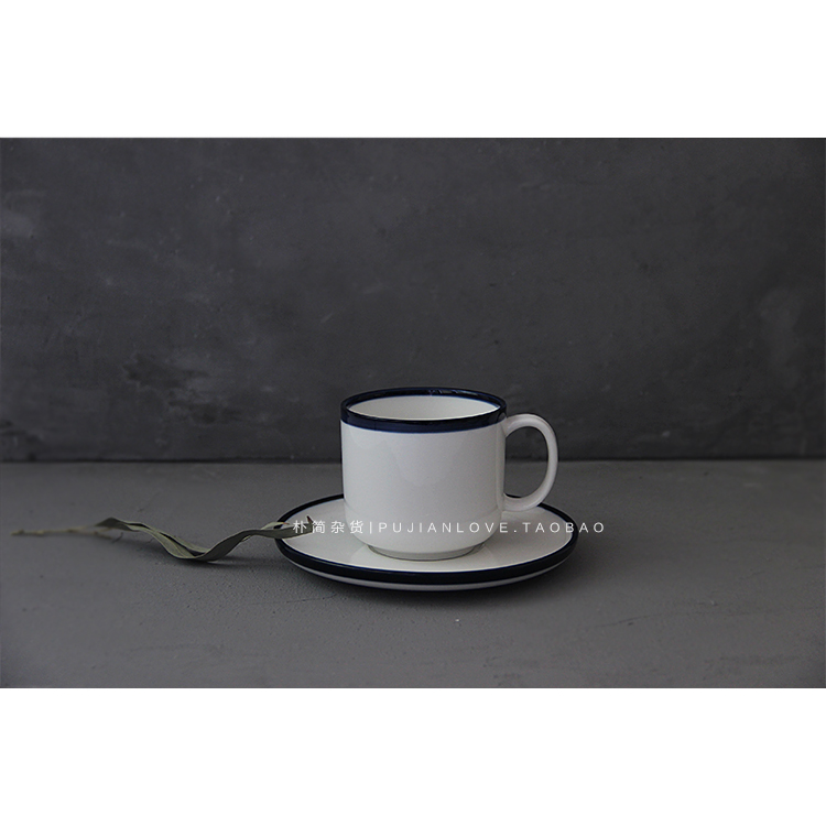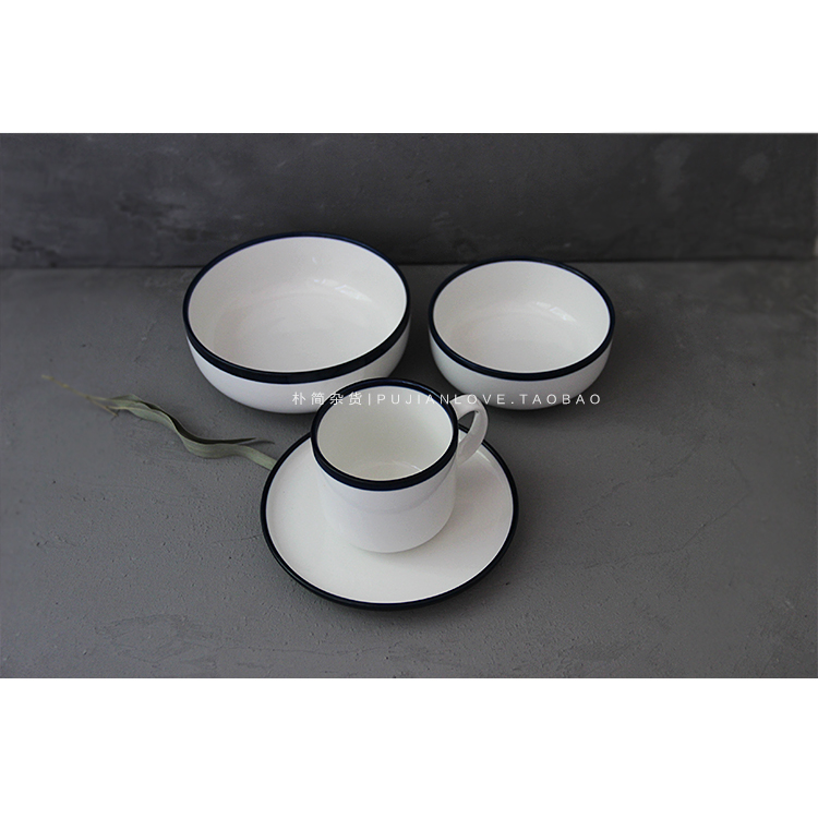 樸簡|北歐簡約百搭藍邊陶瓷餐具 圓形碗盤咖啡杯 餐具套裝