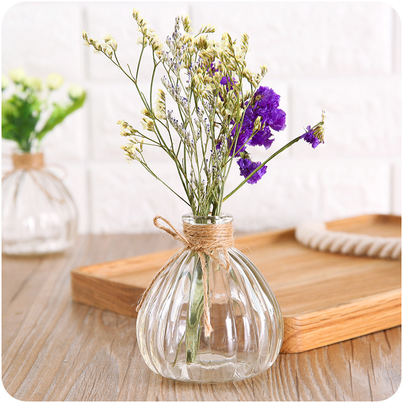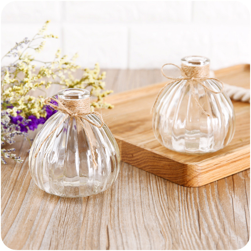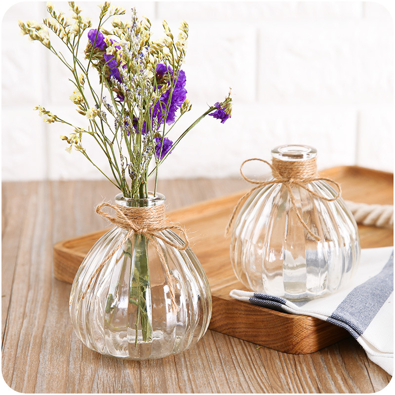 / 簡歐式花瓶創意小口南瓜瓶干鮮花裝飾擺設玻璃透明插花瓶客廳辦公