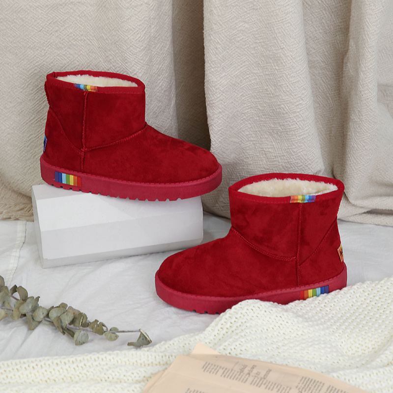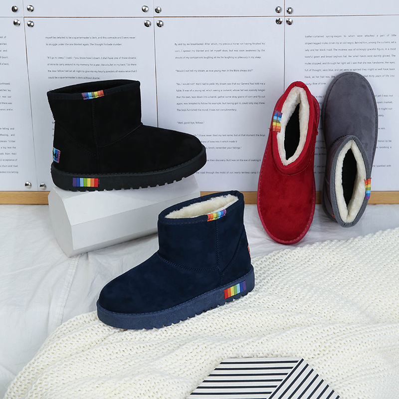 MG小象保暖短筒雪地靴平底防滑女鞋冬季2018新款學生加絨厚底棉鞋