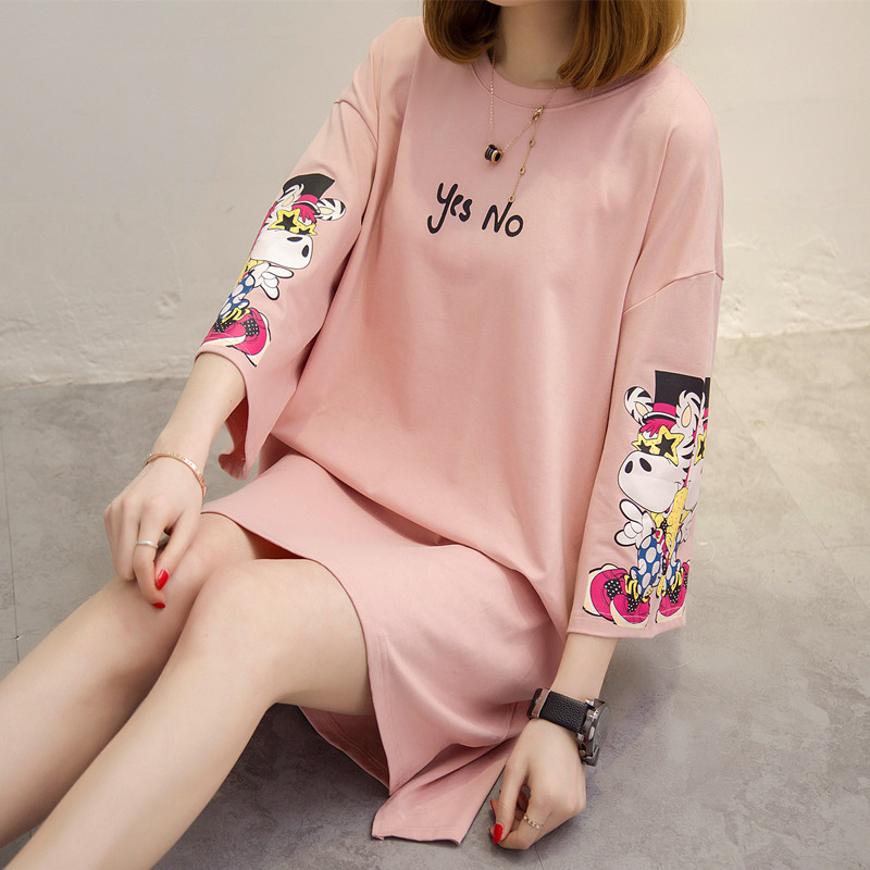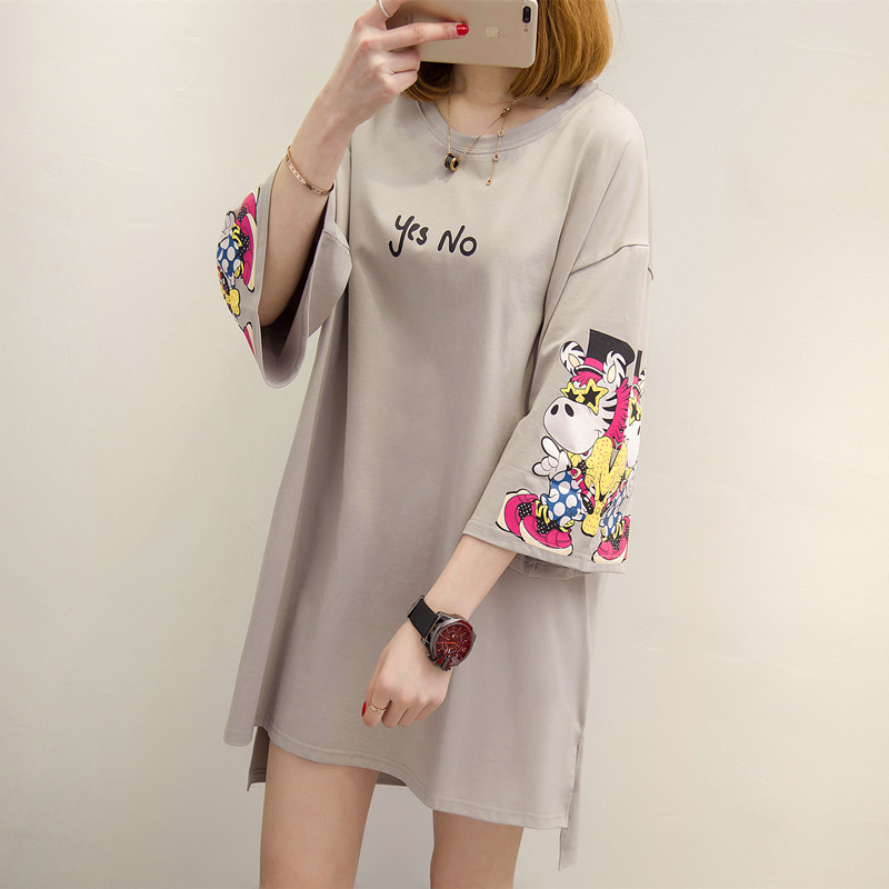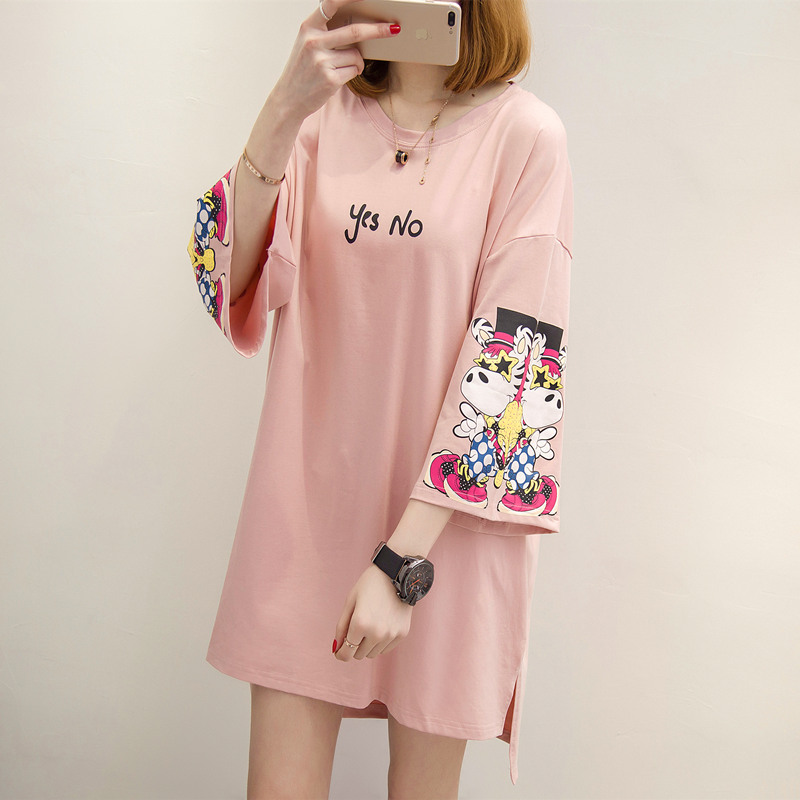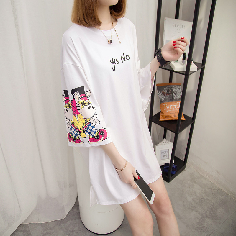 / 女裝夏裝新款潮白色t恤女中長袖個性寬松上衣體恤女打底短袖