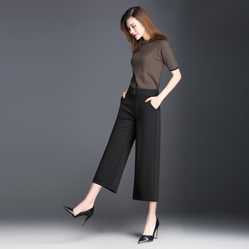 / 闊腿褲女高腰九分褲春夏新款韓版寬松褲子直筒夏季學生七分休閑褲