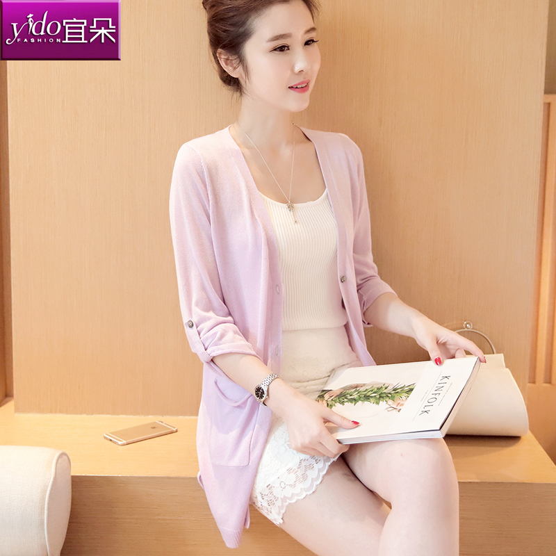 / 中長款針織衫女開衫薄外搭春季中袖針織空調衫女開衫防曬衫薄