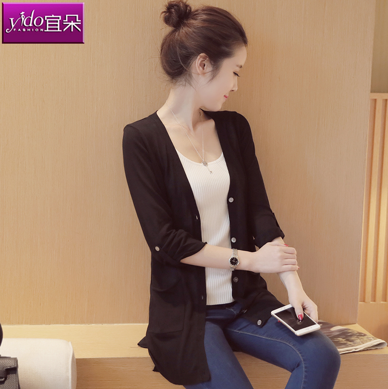 中長款針織衫女開衫薄外搭春季中袖針織空調衫女開衫防曬衫薄