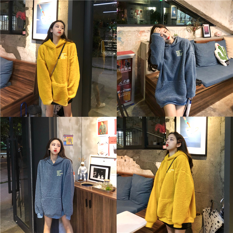 / 港風chic秋冬加厚新款刺繡時尚韓版氣質套頭寬松連帽百搭衛衣女潮