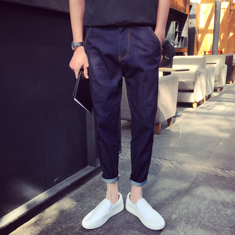 新款日系復古修身小腳男士牛仔哈倫褲九分褲潮