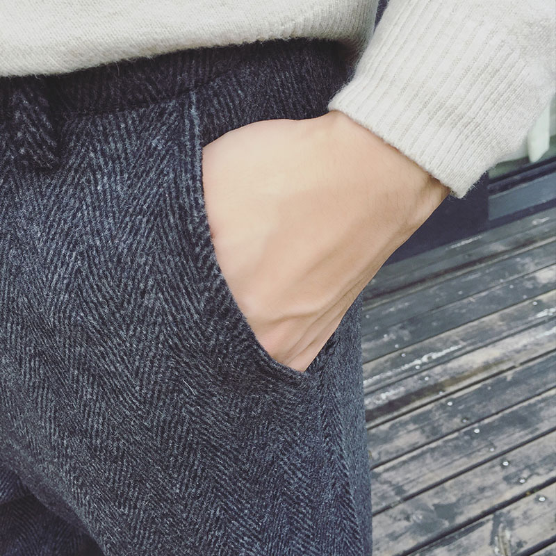 男裝韓版呢料加厚小腳哈倫褲錐形毛呢寬松束腳褲男