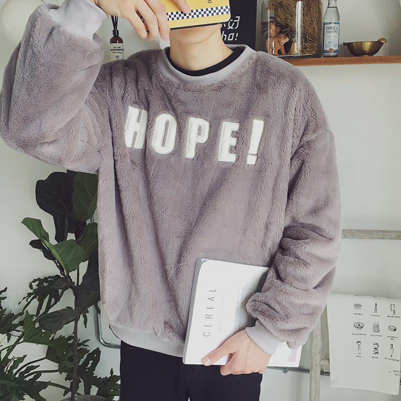 / 男裝新款韓版寬松貼布字母毛絨蝙蝠袖港風文藝男士衛衣外套