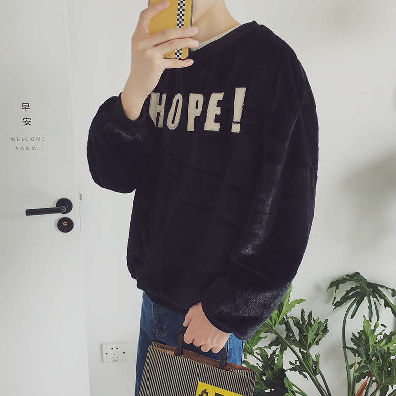 男裝新款韓版寬松貼布字母毛絨蝙蝠袖港風文藝男士衛衣外套