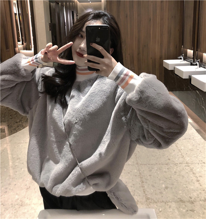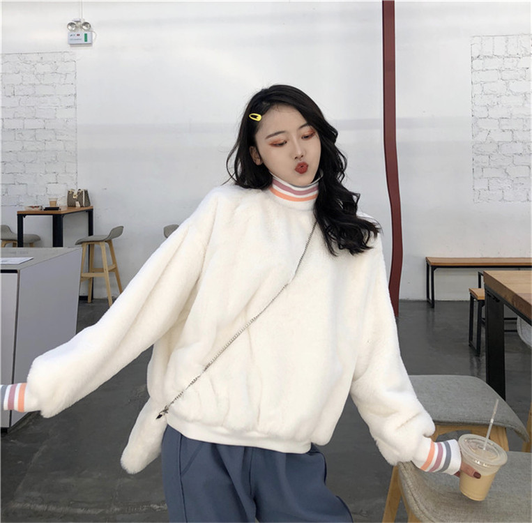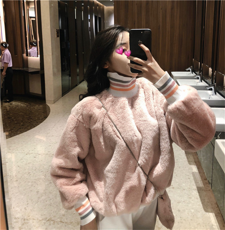 / 韓版百搭寬松加絨保暖時尚上衣長袖chic高領套頭毛毛衛衣女送包包