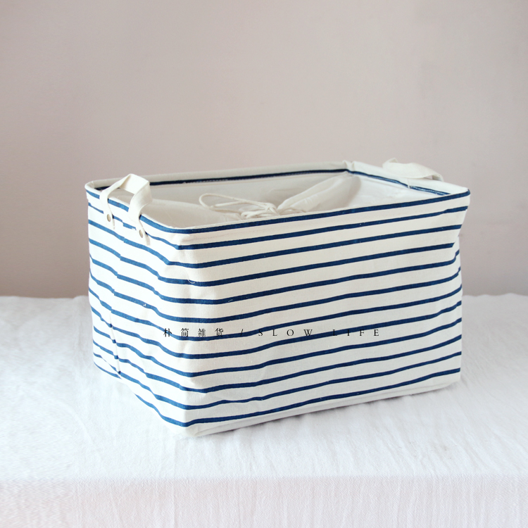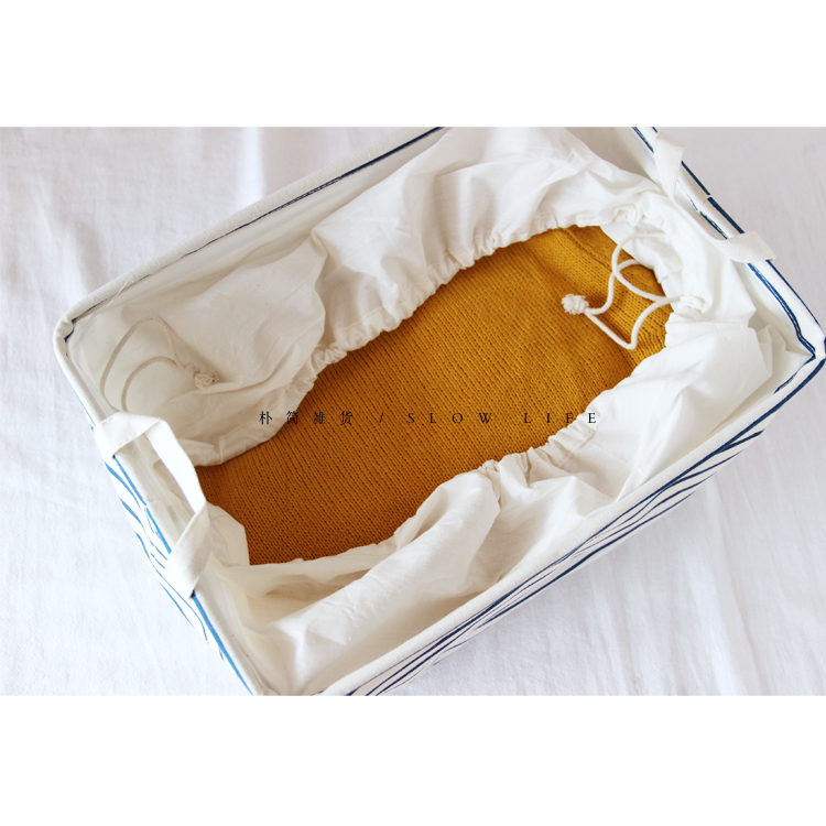 / 樸簡|外貿條紋大號束口棉麻衣物收納籃 布藝儲物籃家居收納筐