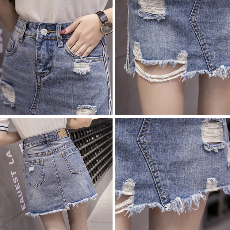 / 破洞牛仔裙半身裙女韓版高腰A字裙包臀短裙做舊流蘇毛邊褲裙夏季