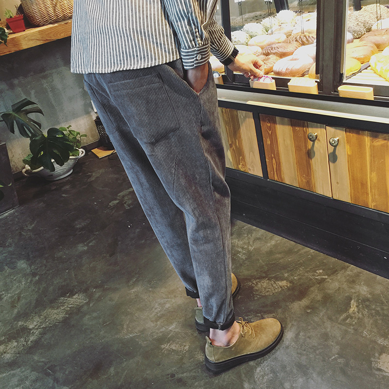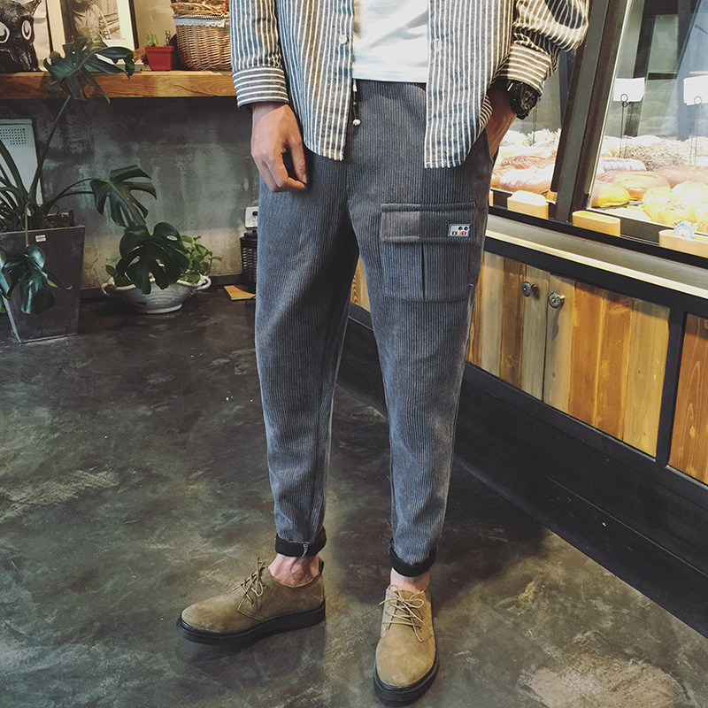 / 男裝原創新款袖標韓版修身小直腳男士燈芯絨休閑褲