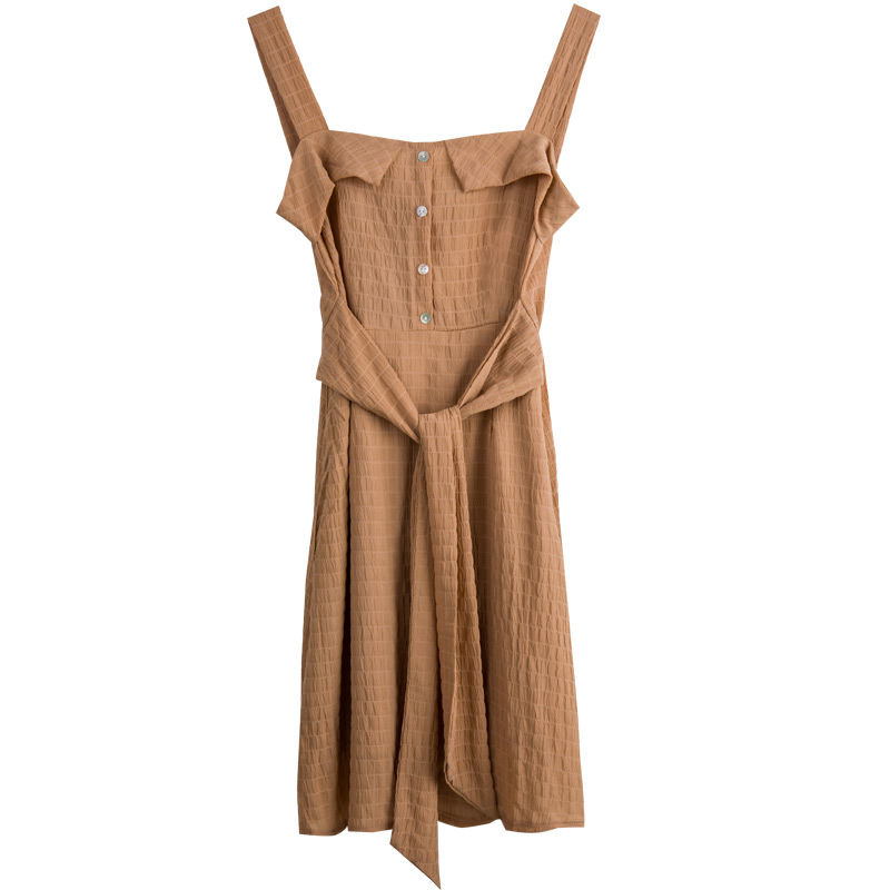 吊帶抹胸式的領口,露出性感的鎖骨領口