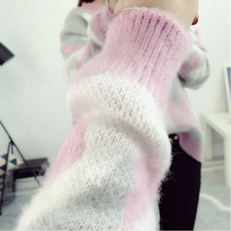 套頭毛衣女寬松韓版短款V領針織衫迷彩外套秋冬裝女裝新款潮