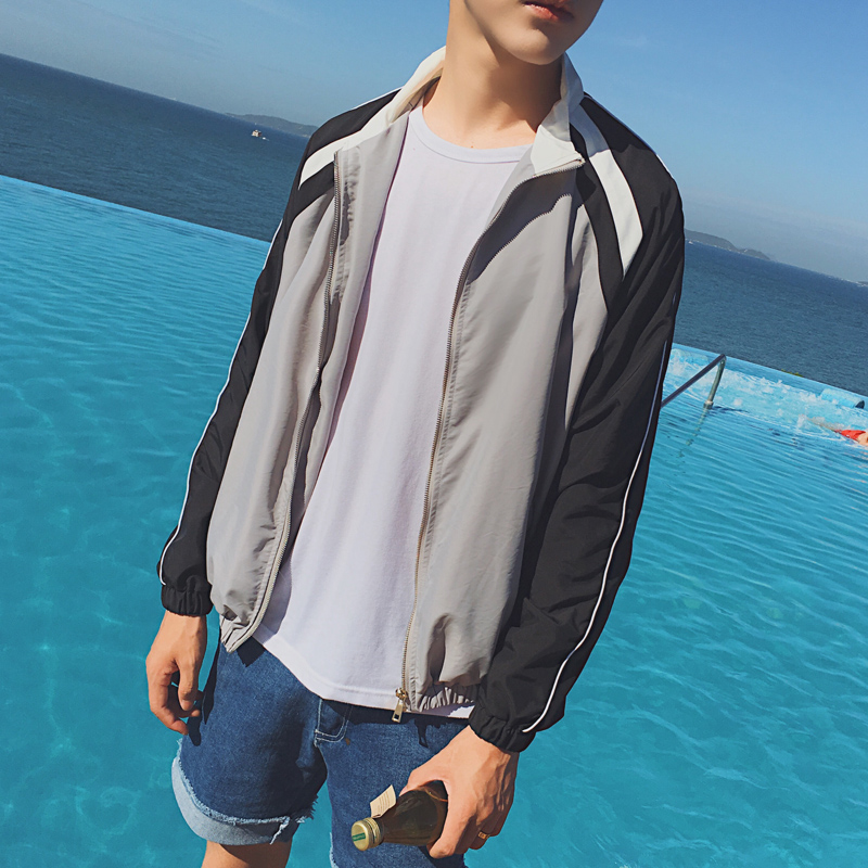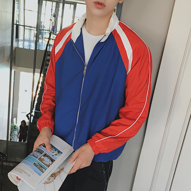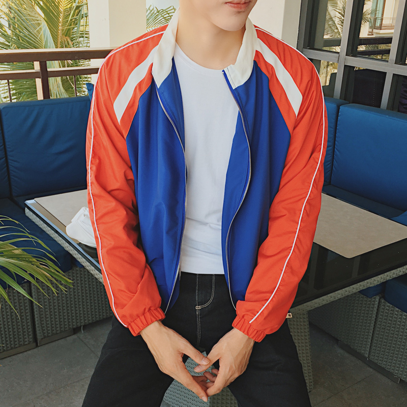 / 男裝插肩袖撞色韓版男士春裝新款翻領修身短款夾克