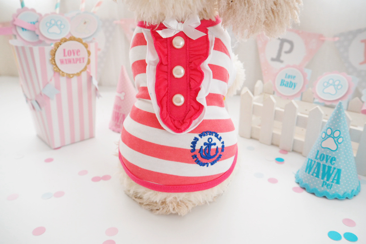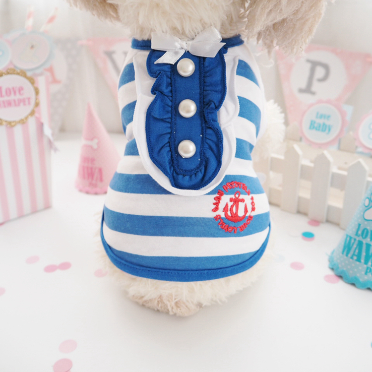 QC條紋氣質水手寵物泰迪狗狗衣服貴賓犬貓咪裝春夏款情侶海軍