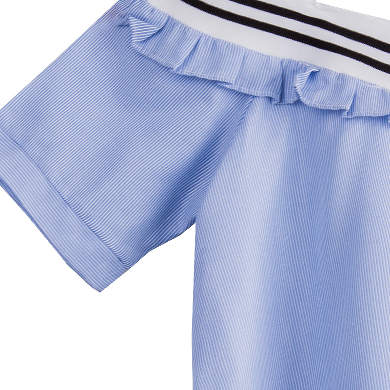 / 夏裝韓版新款女裝一字領露肩連衣裙時尚條紋系帶小清新裙子潮