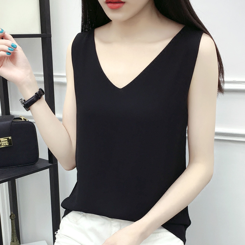 / 春夏新款雪紡工字背心女吊帶百搭大碼顯瘦打底衫外穿上衣