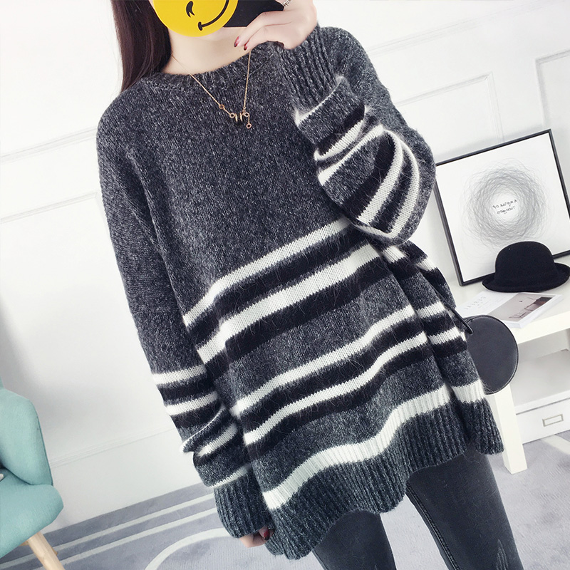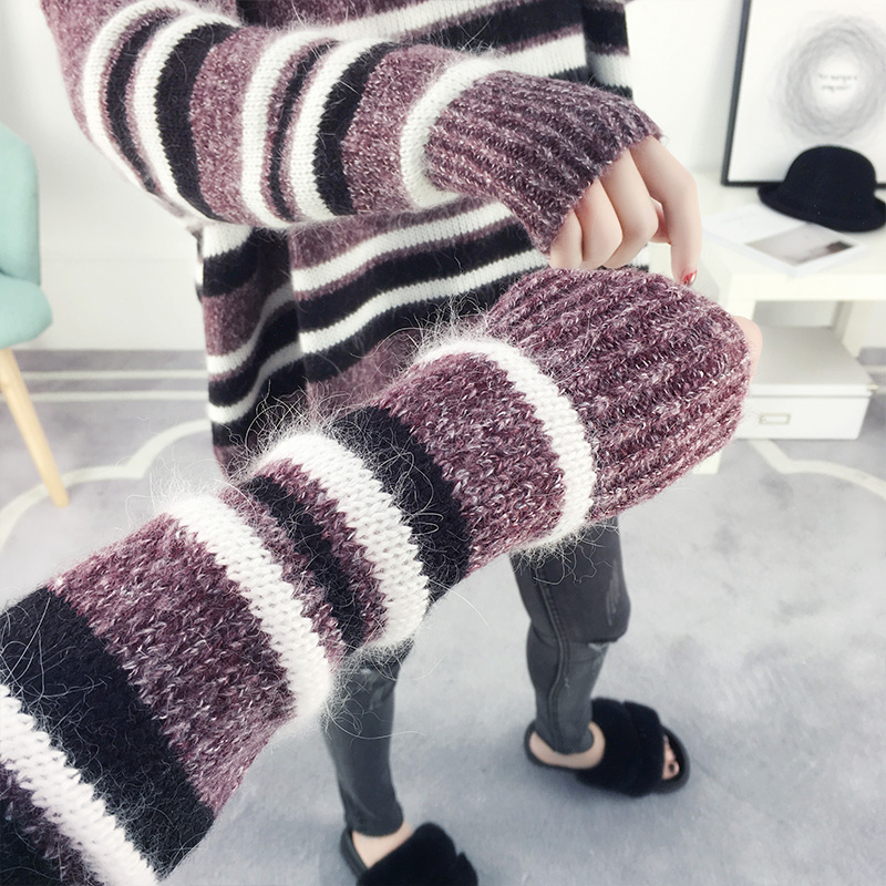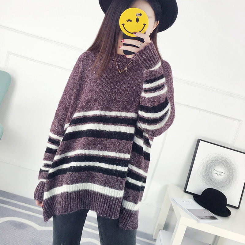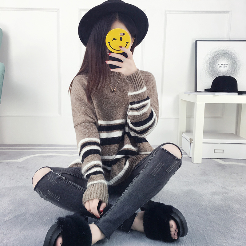 套頭毛衣女秋冬韓版寬松學院風條紋針織衫外套女裝秋裝新款潮