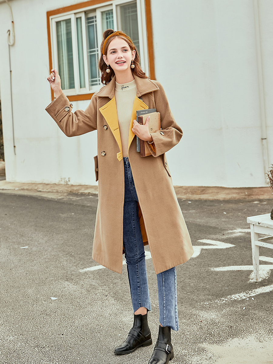 / 【直降120元】【108元雙11清倉】MG小象收腰雙排扣卡其色毛呢大衣