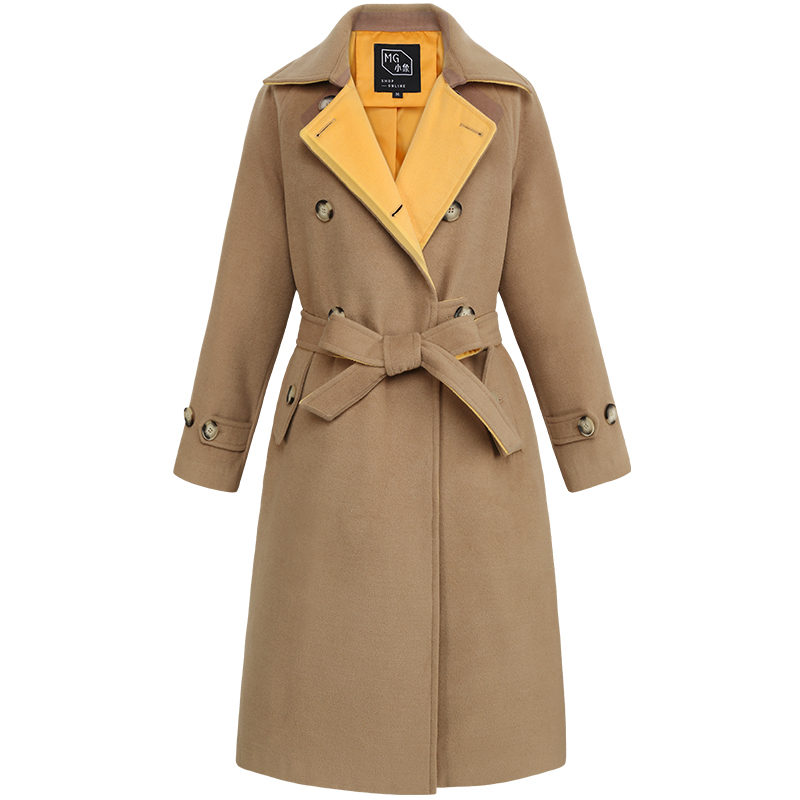 【直降120元】【108元雙11清倉】MG小象收腰雙排扣卡其色毛呢大衣