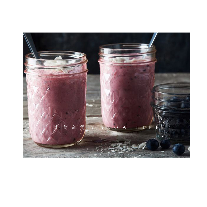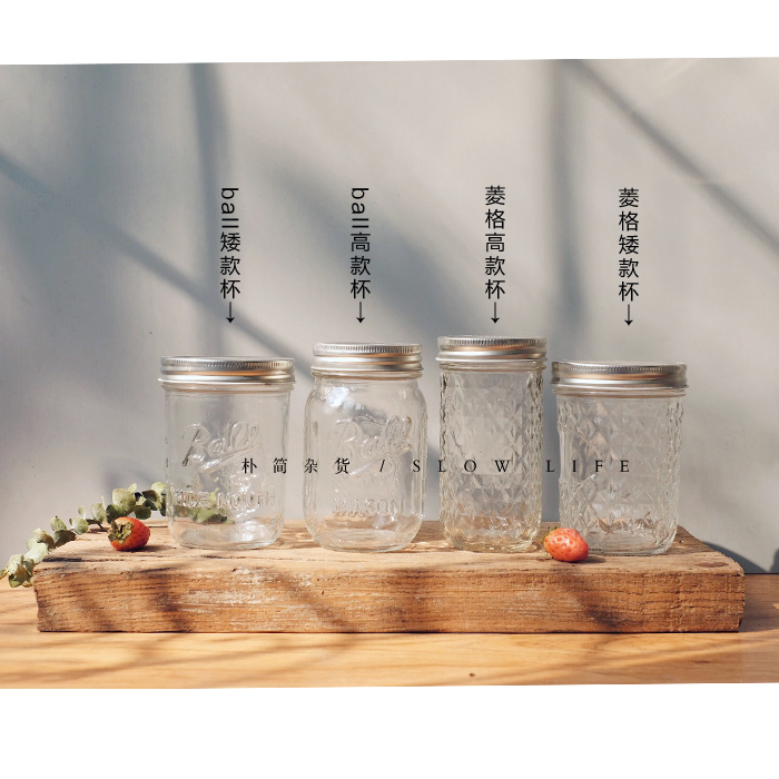 樸簡|夏季菱格杯 字母浮雕玻璃杯 梅森杯 冷飲果汁杯思慕雪杯