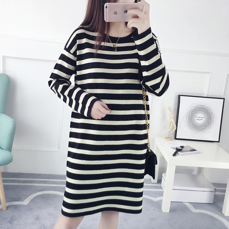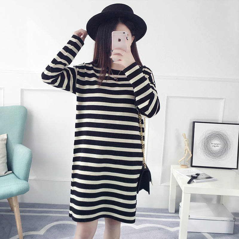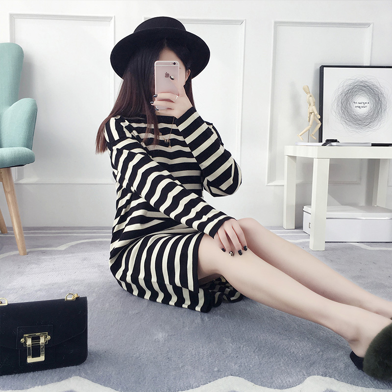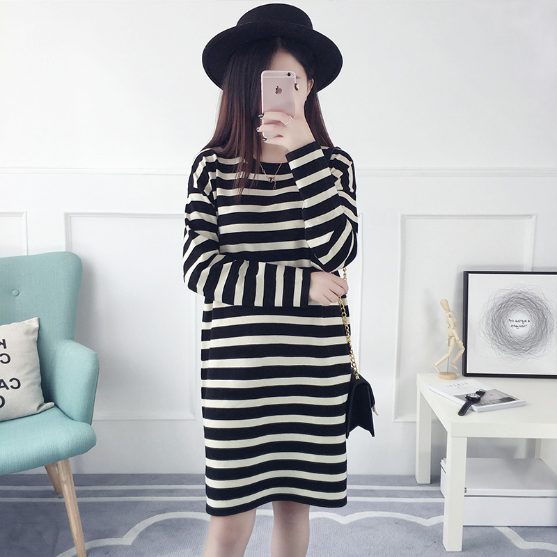 / 套頭毛衣女秋冬裝韓版寬松中長款條紋針織衫長袖打底衫新款潮
