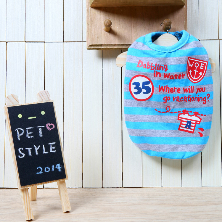 新品T~條紋字母T恤 帥氣寵物背心狗狗衣服泰迪春夏裝 14DF11