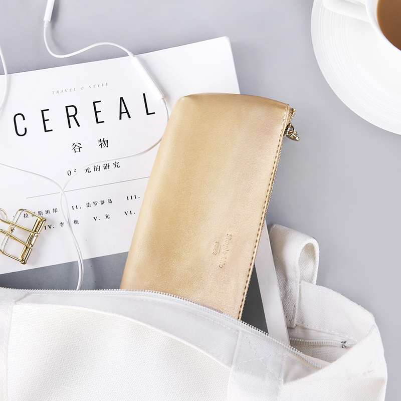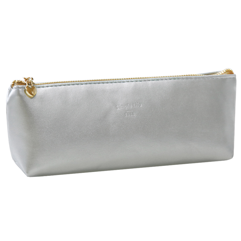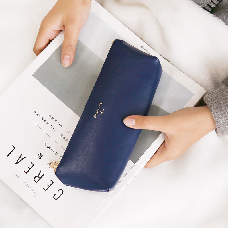 云木雜貨 簡約生活筆袋皮質燙金純色商務文具袋 鉛筆袋學習用品