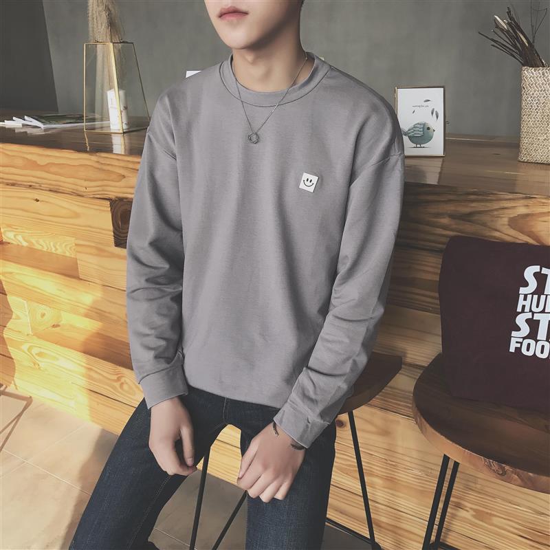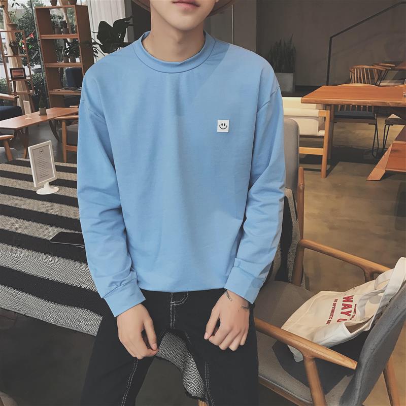 / 男裝韓版笑臉圖案百搭男士純色圓領衛衣春裝長袖上衣