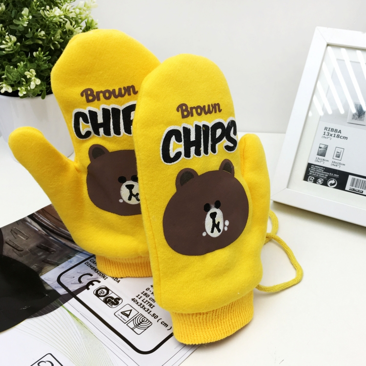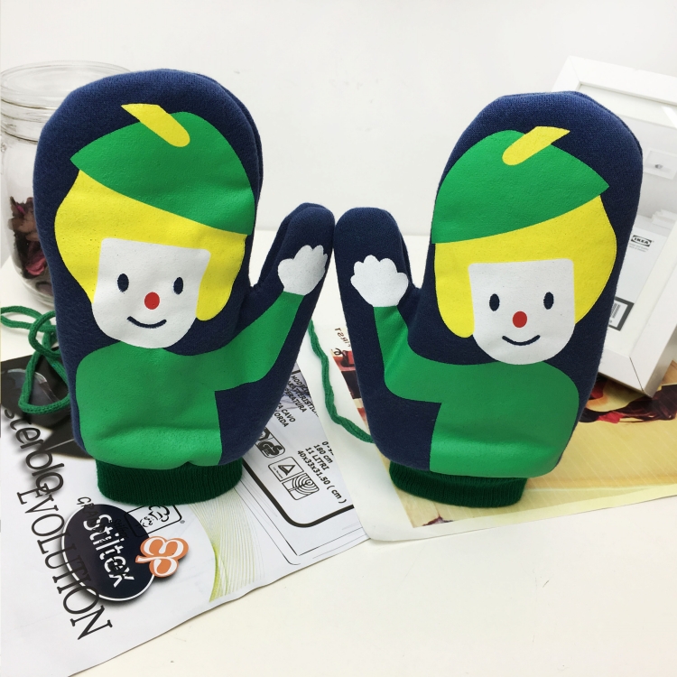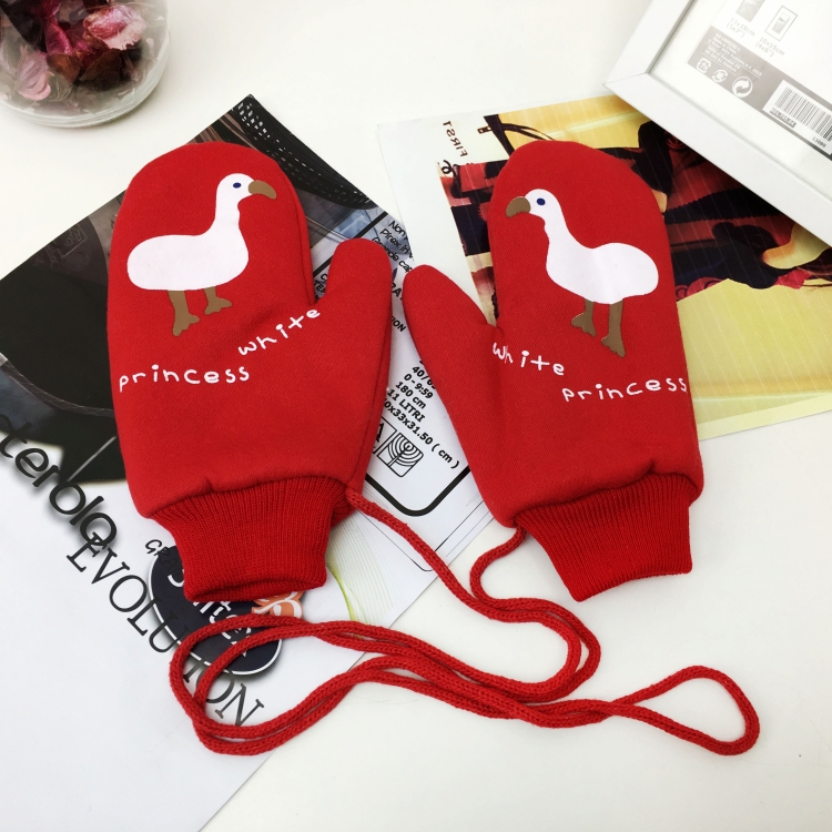 / 冬季韓版可愛加厚掛脖手套情侶款卡通膠印保暖連指手套男女