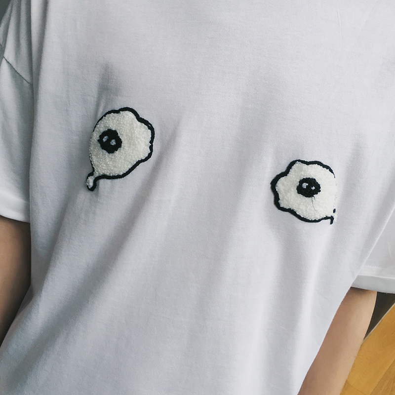 / 卡通印花半截袖韓版潮學生情侶裝夏季寬松短袖T恤男