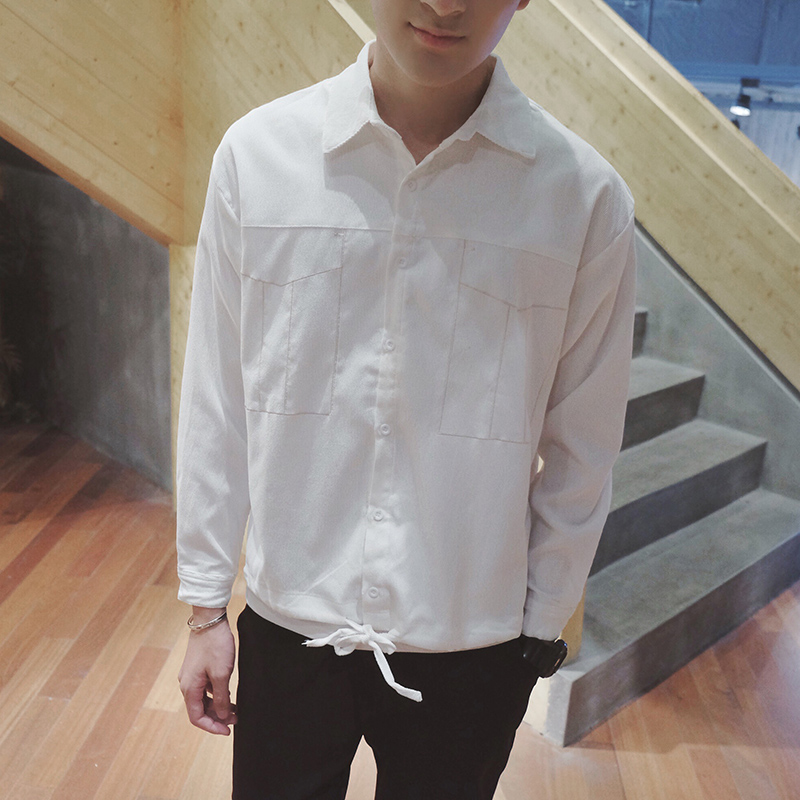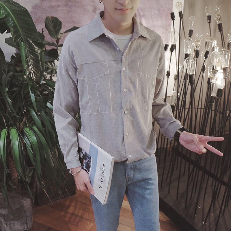 新款韓版男士口袋小清新長袖襯衣寬松休閑襯衫