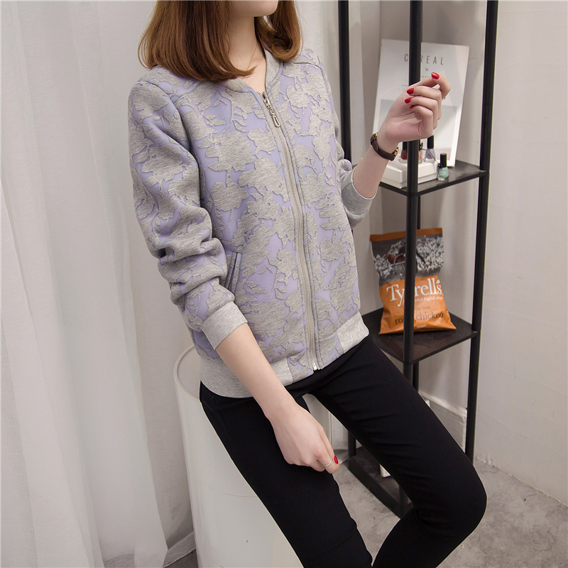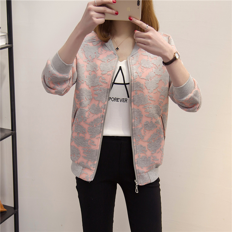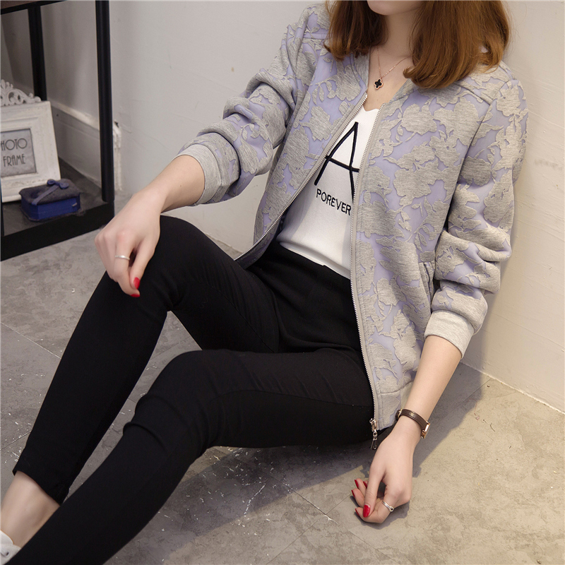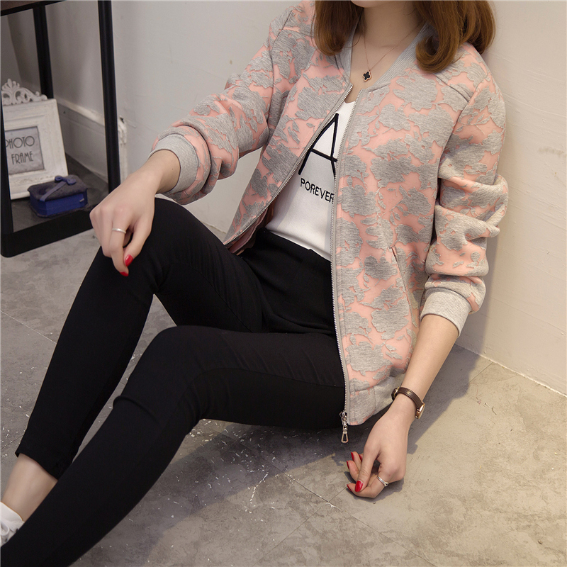 秋冬裝新款女裝韓版寬松大碼印花短外套夾克女外套百搭棒球服