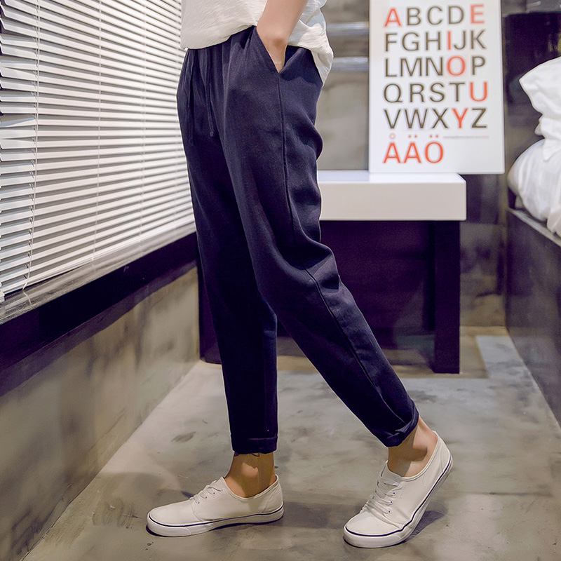 / 新款秋季薄款男士休閑褲韓版修身亞麻九分褲潮