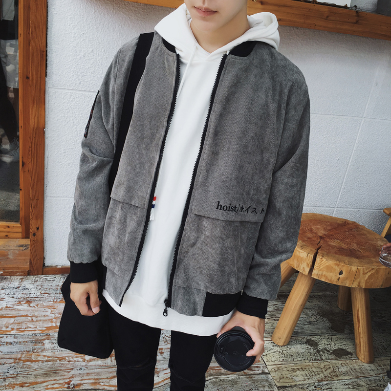/ 原創日系字母繡花燈芯絨潮男大碼夾克港風秋新棉衣